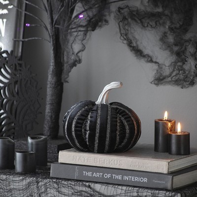 Whisen Fabric Stripe Pumpkin Decor, Holiday Halloween Decoration - Black & White