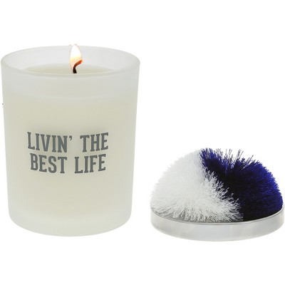 Pavilion Gift Company - Best Life - Blue & White - 5.5 oz - 100% Soy Wax Candle with Pom Pom Lid Scent: Tranquility - Flame Candles