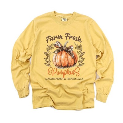 Simply Sage Market Women's Coquette Farm Fresh Pumpkin Long Sleeve Garment Dyed Tee