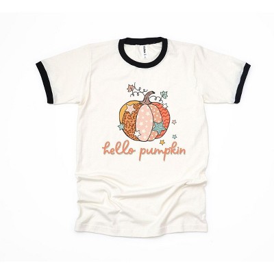 Simply Sage Market Women's Hello Pumpkin Colorful Stars Short Sleeve Ringer Tee