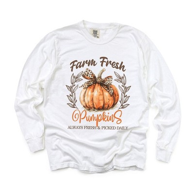 Simply Sage Market Women's Coquette Farm Fresh Pumpkin Long Sleeve Garment Dyed Tee