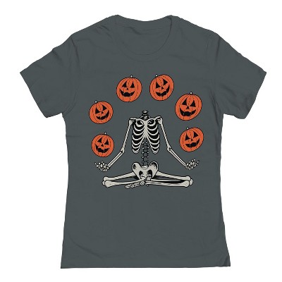 Rerun Island Women Yoga Skeleton Pumpkins Short Sleeve Graphic Cotton T-Shirt