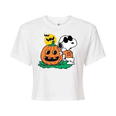 Women's - Peanuts - Joe Cool Pumpkin Cropped Graphic T-Shirt