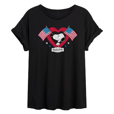 Women's - Peanuts - Snoopy USA Heart Since 1776 Oversized Graphic T-Shirt