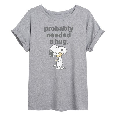 Women's - Peanuts - Snoopy Woodstock Need Hug Oversized Graphic T-Shirt