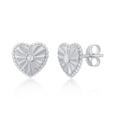 Bella Silver Sterling Silver Heart Beaded Outline w/ CZ Stud Earrings