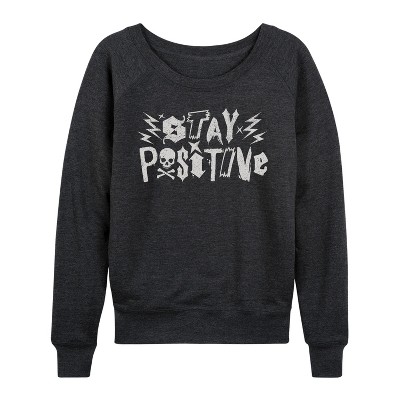 Women's - Instant Message - Stay Positive Punk Lightweight French Terry Wide Neck Long Sleeve Graphic Shirt