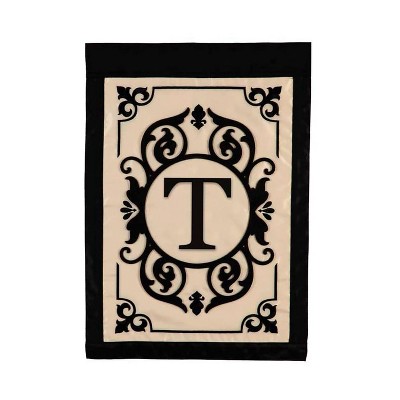 Evergreen Flag Cambridge Chic Letter T Monogram Applique Garden Flag - 12.5" Wide x 18" High
