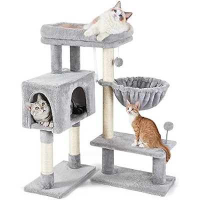 rabbitgoo Cat Tree Cat Tower with Adjustable Base, Small Cat Tree for Indoor Cats, Small Kittens, 38" Tall (Grey)