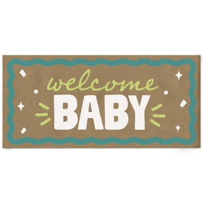 Big Dot of Happiness Light Green and Teal Wavy Welcome Baby Kraft Paper Banner, Retro Baby Shower Backdrop, Printed Brown Paper Party Decor – 1 Count