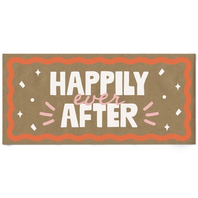 Big Dot of Happiness Pink and Orange Wavy Happily Ever After Kraft Paper Banner, Retro Bridal, Bachelorette, Wedding, Printed Brown Paper – 1 Count