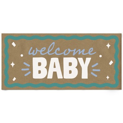 Big Dot of Happiness Blue and Teal Wavy Welcome Baby Kraft Paper Banner, Retro Baby Shower Backdrop, Printed Brown Paper Party Decoration – 1 Count