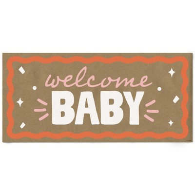 Big Dot of Happiness Pink and Orange Wavy Welcome Baby Kraft Paper Banner, Retro Baby Shower Backdrop, Printed Brown Paper Party Decoration – 1 Count