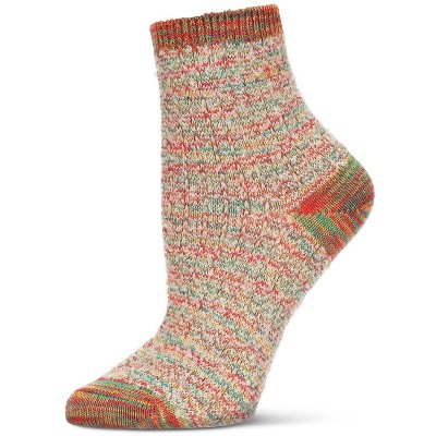 Memoi Women's Reverse Terry Stripe Sheer Cotton Blend Crew Socks