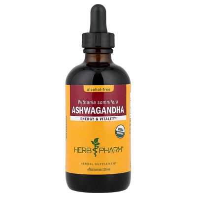 Herb Pharm Certified Organic Ashwagandha Extract Drops for Traditional Support for Energy and Vitality, Alcohol-Free Glycerite, 4 Oz