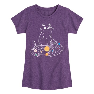 Girls' - Instant Message - Cat Solar System Fitted Short Sleeve Graphic T-Shirt