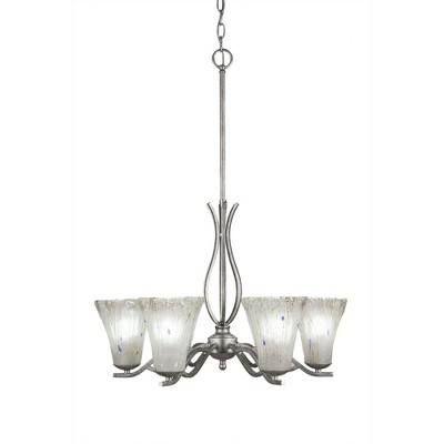 Toltec Lighting Apollo 4 - Light Chandelier in Dark Granite with 5.5" Fluted Frosted Crystal Shade