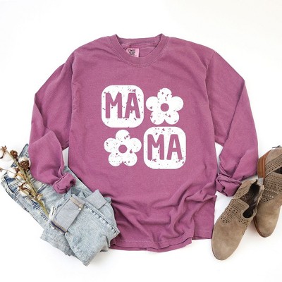 Simply Sage Market Women's Mama Square Flower Grunge Long Sleeve Garment Dyed Tee