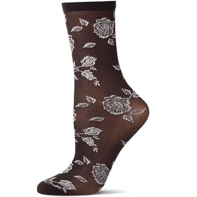 Memoi Women's All-Over Fancy Floral Sheer Crew Sock