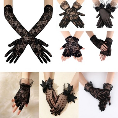 8 Pairs Black Lace Gloves, Elegant Sheer Polyester Lace Gloves for Wedding Party Costume Cosplay Daily Wear