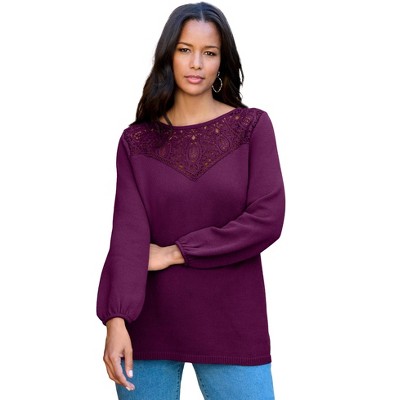 Roaman's Lace Mesh Pullover Sweater
