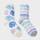 Women's Petite Blossoms Crew Socks - A New Day™ Sour Cream
