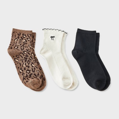 Women's Scallop Rib Embroidered Icon Bow Ankle Socks - A New Day™ Colorful Mix