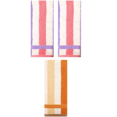REGALWOVEN Solid Stripe Pattern Bathroom Face Hand Towels 14" x 30"/13" x 30" 2 Pcs
