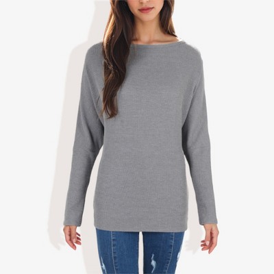 Anna-Kaci Women's Open Neck Waffle Knit Dolman Sleeve Side Slit Tunic Pullover for Casual Looks