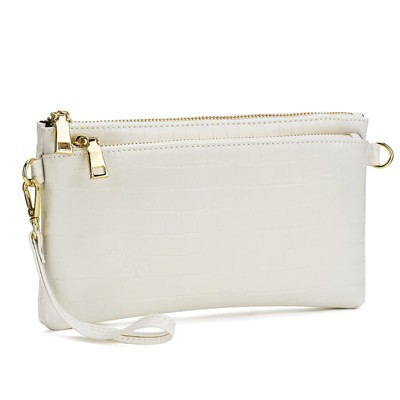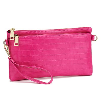 Narway Triple Zip Small Crossbody Bag Lightweight Purses Vegan Leather Wristlet Clutch, Includes Adjustable Shoulder (Crocodile Blcak
