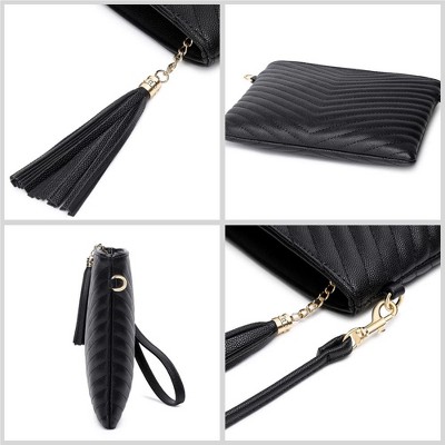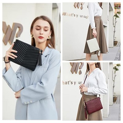 Narwey Trendy Vegan Leather Shoulder Purses, Clutch Wallet with Wristlet Strap,Small tassel Crossbody Bags for Women (White&Lg)
