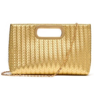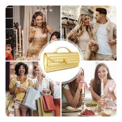 Narwey Woven Purse for Women Evening Clutch Woven Leather Handbags Crossbody Bag Purse Formal Evening Bag, Golden