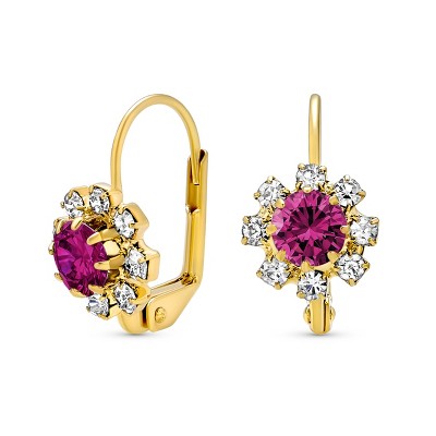 Bling Jewelry Flower Crystal Drop Earrings Gold Plated Brass Lever Back