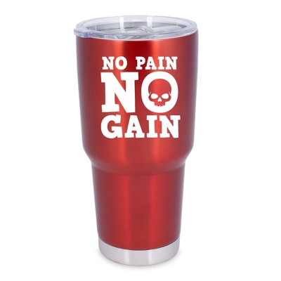 100 North 30 Ounce Stainless Steel On the Go Travel Tumbler With Push Top Lid, No Pain No Gain Red