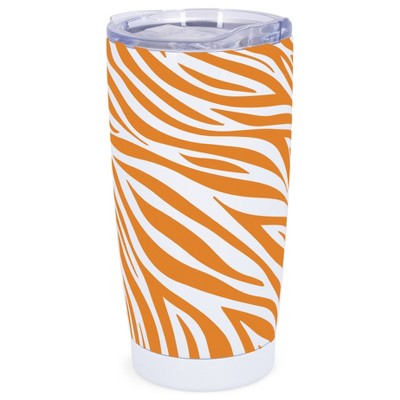 Elanze Designs 20 oz Stainless Steel On the Go Insulated Travel Tumbler With Push Top Lid, Tangerine Orange Zebra Print White