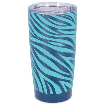 Elanze Designs 20 oz Stainless Steel On the Go Insulated Travel Tumbler With Push Top Lid, Multicolored Giraffe Print Sky Blue