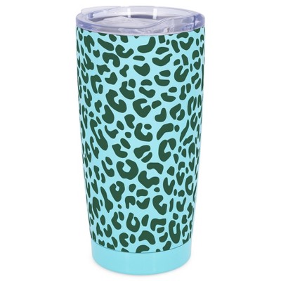 Elanze Designs 20 oz Stainless Steel On the Go Insulated Travel Tumbler With Push Top Lid, Sky Blue Cheetah Leopard Print Sky Blue