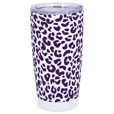 Elanze Designs 20 oz Stainless Steel On the Go Insulated Travel Tumbler With Push Top Lid, Navy Blue Cheetah Leopard Print Blue