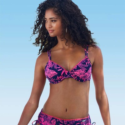 Women's Hibiscus Print Underwire Bikini Swimsuit Top Bra Sizing - LASCANA