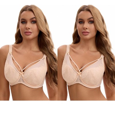 INSPIRE CHIC Women's Lace Mesh Full Coverage Underwire Soft Cup Light and Breathable Push Up Bras 2 Packs