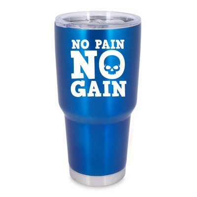100 North 30 Ounce Stainless Steel On the Go Travel Tumbler With Push Top Lid, Hustle for the Muscle Blue