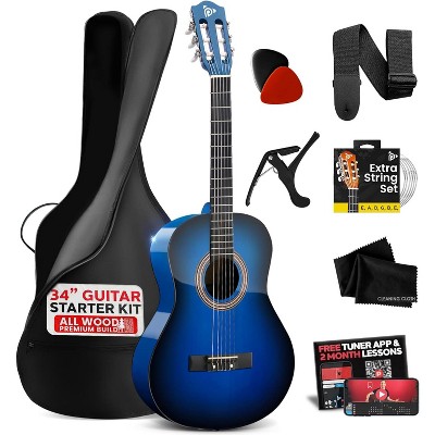 Pyle 34-Inch 6-String Classical Acoustic Guitar (Blue Burst) – Ideal for Beginners with Accessory Kit