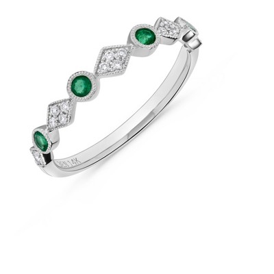 H.J. Namdar 0.25 ct tw Prong & Bezel Set Diamond And Emerald Stack Ring 14K White Gold Natural Emeralds and Diamonds Size 6