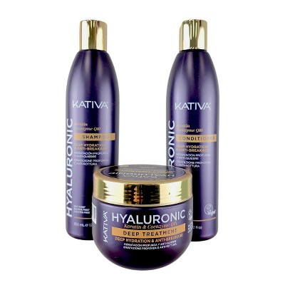 Kativa Hyaluronic Keratin & Coenzyme Q10 Deep Hydration Shampoo, Conditioner (12oz) & Treatment (10oz) Give your hair softness & strength Trio Kit