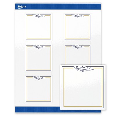 Avery 3" x 3" Labels, Gold & Navy Border with Florals, 60 ct, Glossy, Gold & Navy Border with Florals