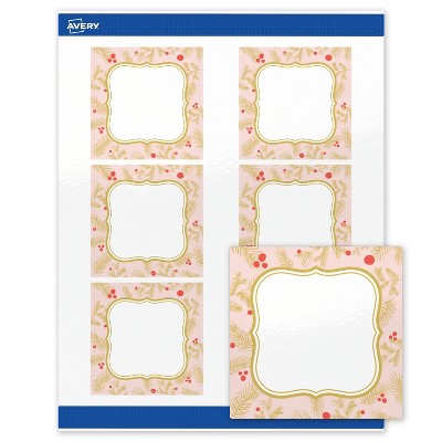 Avery Labels, 3" x 3", Gold-Pink Berries, Glossy, 60ct