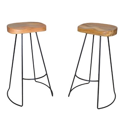 Indoor Wooden Barstool (Set of 2) with Rubberwood Frame, Curved Plywood Seat and Low-Profile Backrest for Home Bar
