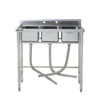 - triple basin kitchen sink stainless steel