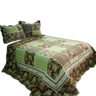 Slickblue Full/Queen 3PC Cotton Quilt Set — 10 Unique Designs, Vermicelli Quilted with 2 Shams