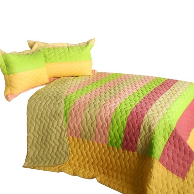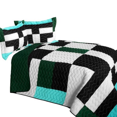 Slickblue 100% Cotton 3-Piece Quilt Set, Vermicelli-Quilted, Floral Patchwork, Full/Queen Size, 3 Designs